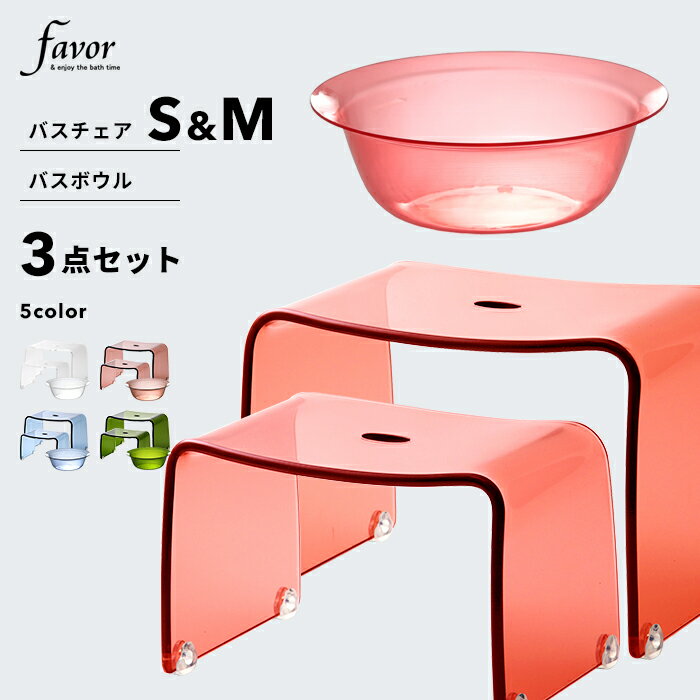 『レビュー投稿で選べる特典』 Favor フェイヴァ「アクリル バスチェア Sサイズ&Mサイズ&バスボウルの3点セット」親子 アクリルバスチェア シャワーチェア バスチェアー 風呂いす 風呂イス 風呂椅子 椅子 お風呂 洗面器 風呂桶 フェイバ 高級感 おしゃれ