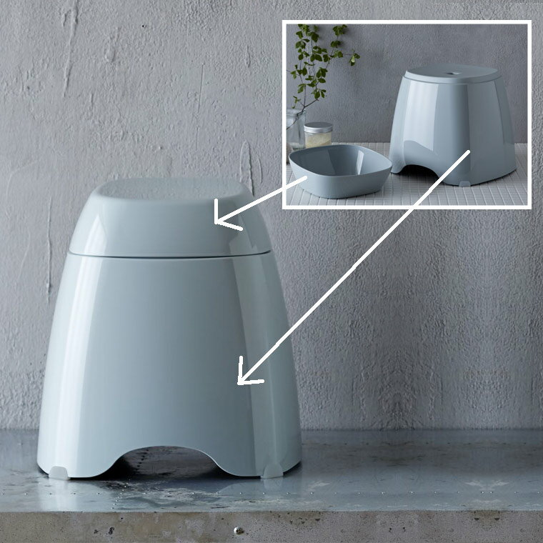 シックな2色のホワイトとブルーはスッキリ収納できるセットで、引っ越し祝いや新築祝いのギフトとしても、また、いつものバスタイムをよりよくお過ごしいただくお供にも、スッキリ収納、座りやすい、お手入れ簡単と三拍子そろった「&HAT<アンドハット>バススツール(単品)」を是非お試しください。