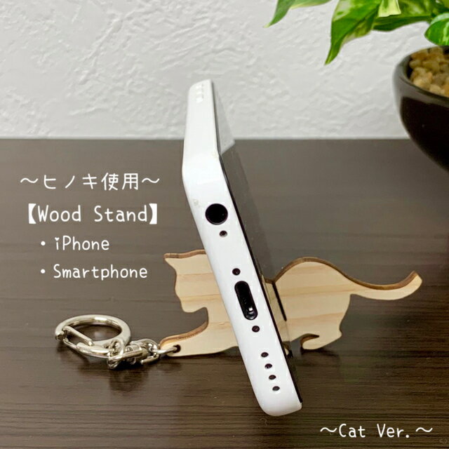 Wood スマートフォン【ひのき材】スタンド(Cat Ver.)猫・ねこ・ネコシリーズ【送料無料】