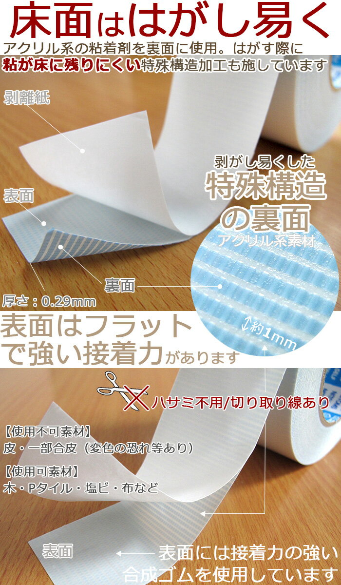 ◇ カーペット用両面テープ ◇ 剥がし易く、粘着剤が残りにくく綺麗で切りやすいカーペット用両面テープ。